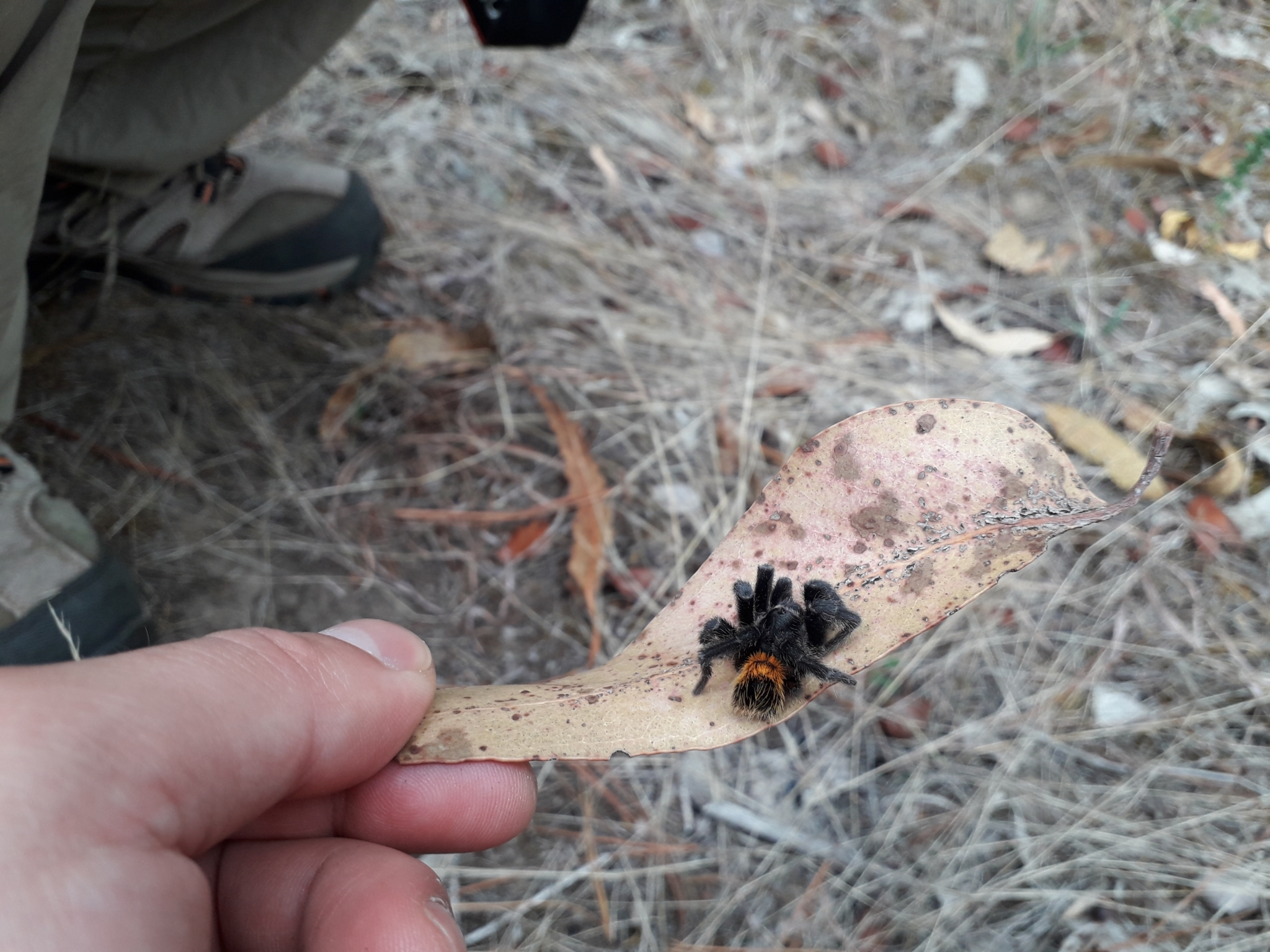 Zachowanie | Pająk naziemny, prowadzący nocny tryb życia. Za dnia ukrywa się w płytkich norach wykopnych w podłożu. Nie buduje sieci łownych, lecz poluje z zasadzki. Pająk ten zwykle czeka przy wejściu do nory lub w jej pobliżu, aż ofiara podejdzie wystarczająco blisko by pochwycić ją jednym szybkim ruchem. Poluje na drobne bezkręgowce. W razie zagrożenia wyczesuje włoski parzące z odwłoka. Pająk ten charakteryzuje się bardzo powolnym tempem wzrostu. Samce dojrzewają płciowo szybciej niż samice i po ostatniej wylince wyposażone są w narządy kopulacyjne – bulbusy – na końcach nogogłaszczek. Po zapłodnieniu tworzy kokon w którym składa kilkanaście drobnych jaj. W zależności od warunków środowiskowych, młode wykluwają się po kilku tygodniach i początkowo pozostają w kokonie. Po pierwszej wylince opuszczają kokon i rozpoczynają samodzielne życie. | |