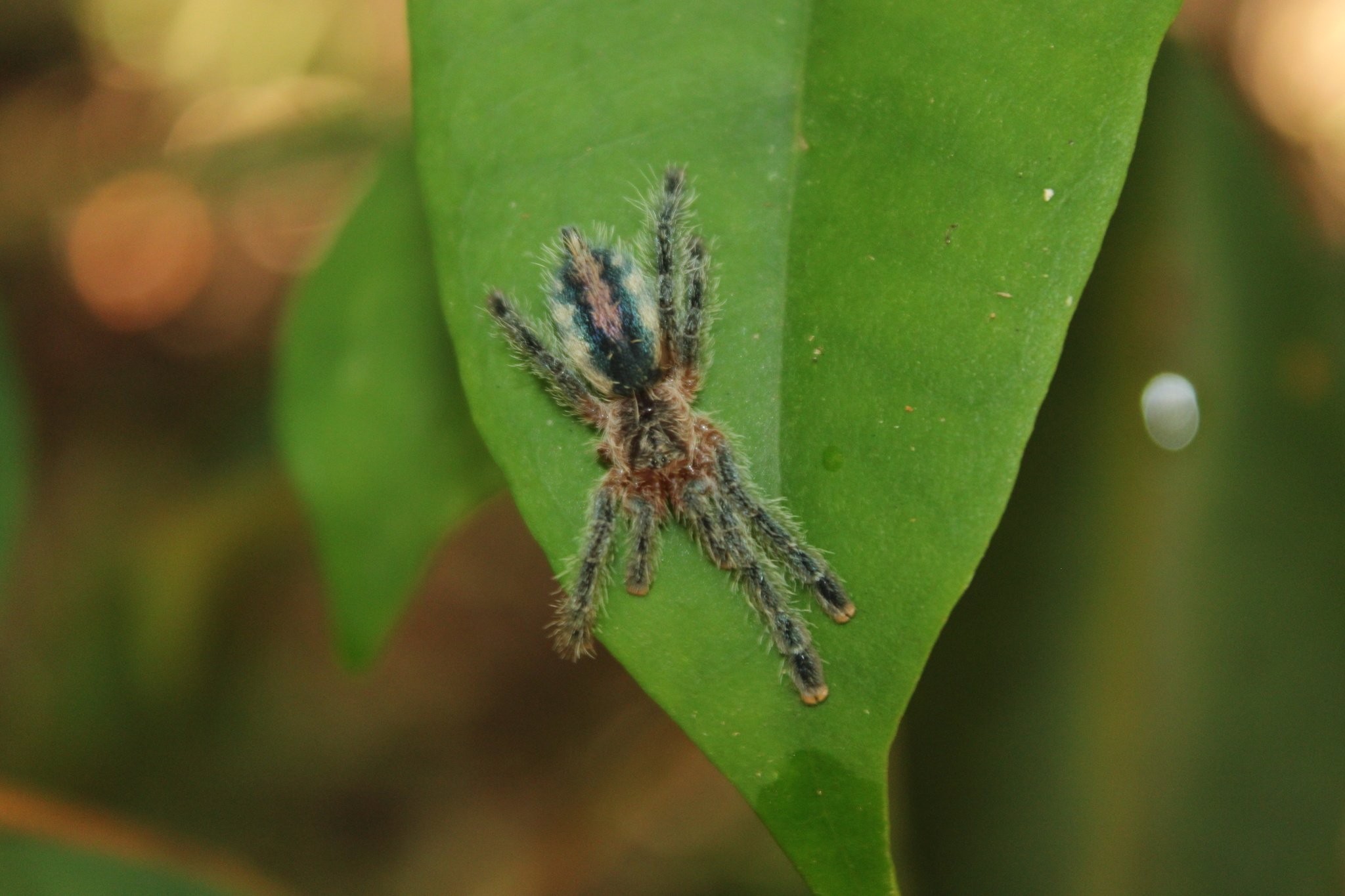 Są to pająki nadrzewne, które potrzebują wysokiego, dobrze wentylowanego terrarium (np. 20×20×45 cm dla dorosłego osobnika). Podłoże powinno być lekko wilgotne (torf, włókno kokosowe), a w środku trzeba umieścić pionowe elementy do wspinaczki – gałęzie, korkowe tuby i rośliny. Temperatura powinna utrzymywać się w granicach 22–27 °C, a wilgotność 75 -85%, przy zapewnieniu dobrej cyrkulacji powietrza, aby uniknąć pleśni. Karmimy owadami (świerszcze, karaczany, szarańcze). Są raczej łagodne, ale szybkie i skoczne – zaleca się ostrożne obchodzenie się z nimi. | |||