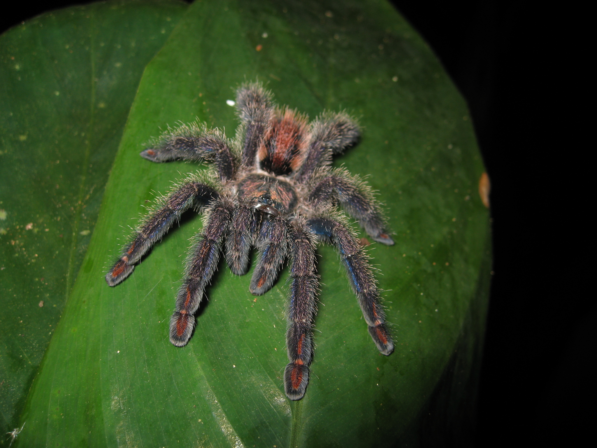 Zachowanie | Pająk nadrzewny, prowadzący głównie nocny tryb życia. Dzień spędza w kryjówkach budowanych w naturalnych zagłębieniach pni, konarach, wśród liści lub w szczelinach kory drzew. Kryjówki te tworzy z gęstej przędzy, którą wykorzystuje do budowy nieregularnych rurkowatych gniazd. Nie buduje klasycznych sieci łownych, lecz poluje aktywnie z zasadzki lub podczas krótkich patroli po najbliższym otoczeniu swojej pajęczyny. Ofiarę chwyta błyskawicznym skokiem, najczęściej z ukrycia, posługując się wrażliwością na drgania podłoża. Poluje głównie na drobne bezkręgowce, takie jak owady i inne stawonogi, jednak starsze i większe osobniki są w stanie upolować również niewielkie kręgowce, np. młode jaszczurki. W sytuacji zagrożenia unika konfrontacji, najpierw próbując ucieczki – często w górę lub do wnętrza pajęczyny. W przeciwieństwie do wielu naziemnych ptaszników rzadko wyczesuje włoski parzące, preferując zachowania unikowe. W skrajnych przypadkach może przyjąć postawę obronną lub ukąsić. Samce dojrzewają płciowo szybciej niż samice i po ostatniej wylince wyposażone są w narządy kopulacyjne – bulbusy – znajdujące się na końcach nogogłaszczek. Po odbyciu kopulacji samica, może złożyć kokon, zawierający od kilkudziesięciu do ponad stu jaj. Młode wykluwają się po kilku tygodniach i pozostają przez pewien czas w kokonie, gdzie przechodzą pierwszą wylinkę. Następnie opuszczają kokon i zaczynają samodzielne życie. | |